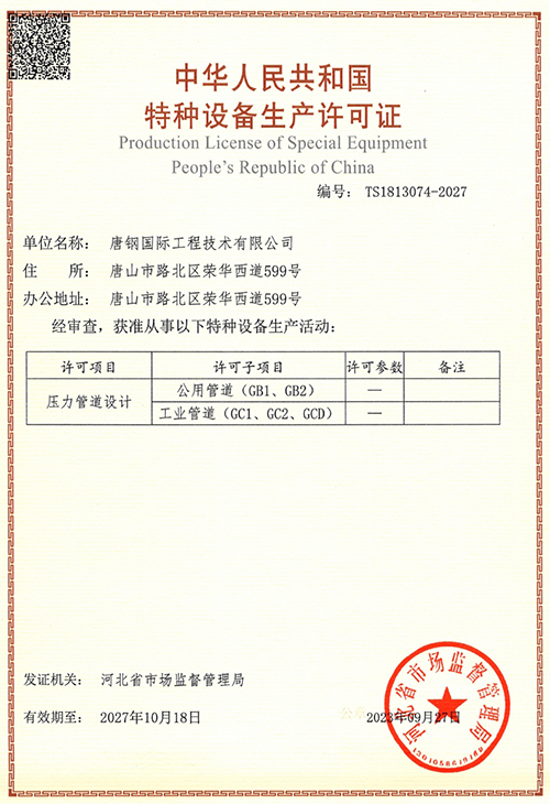 • 特种设备(压力管道设计许可)GC1、GC2、GCD、GB1、GB2