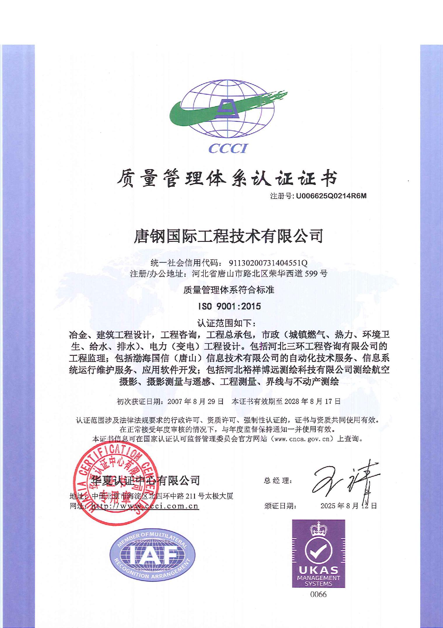 • 质量管理体系认证证书